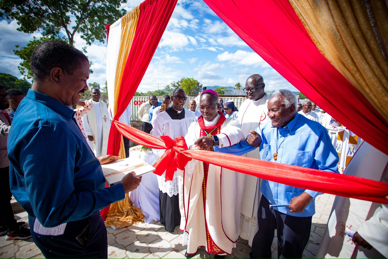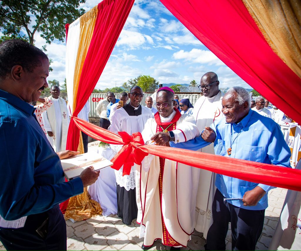 Pour débuter avec la cérémonie, une messe solennelle fut célébrée en la fête de Saint-Joseph travailleur sur la terrasse de la majestueuse structure de trois étages qui accueillent les défunts. Elle fut présidée par l’évêque de Hinche, Monseigneur Desinord avec la présence des autorités de tout acabit de la ville de Hinche et du Plateau Central. Dans son message de circonstance, il a mis en exergue Saint-Joseph, figure emblématique de la foi chrétienne, père putatif de Jésus et bon charpentier, en qui le travail humain devient un lieu de sainteté et d’accomplissement de la vocation de chaque homme. En lui, homme du labeur, le travail manuel honnête, juste et bien fait devient prière vivante et source de témoignage profond.